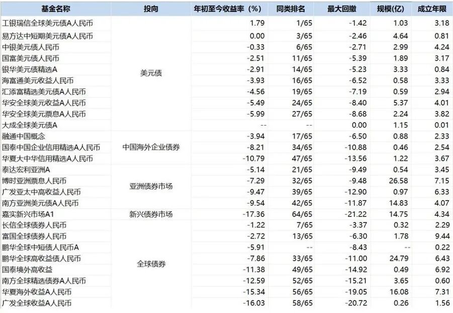 综合公开信息及基础指标对比来看,鹏华全球高收益债人民币、华夏大中华信用债精选A人民币由于地产美元债持仓较高、此轮调整更为充分、且久期较短,加之历史表现较为稳定、规模相对较大,有望在全市场流动性恢复中获益。