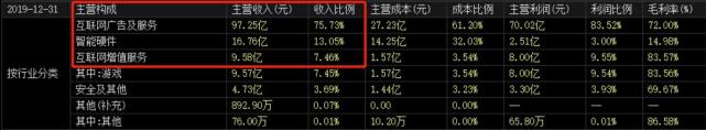 根据2019年的年报数据显示,三六零的互联网广告业务占了收入比例的75.73%,营收高达97.25亿。而除了"打广告"以外,互联网的增值业务仅占7.46%。可以说,三六零的千亿市值,就是靠着"打广告"打回来的。