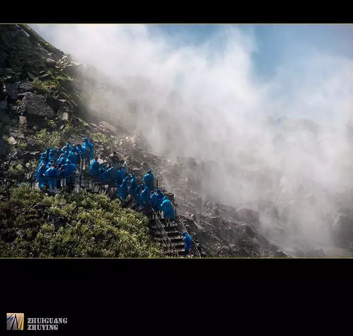 19.此后来到新娘面纱瀑布一端。重新发了黄色雨衣和塑料凉鞋。估计考虑到这里的游客是一定会湿身的。