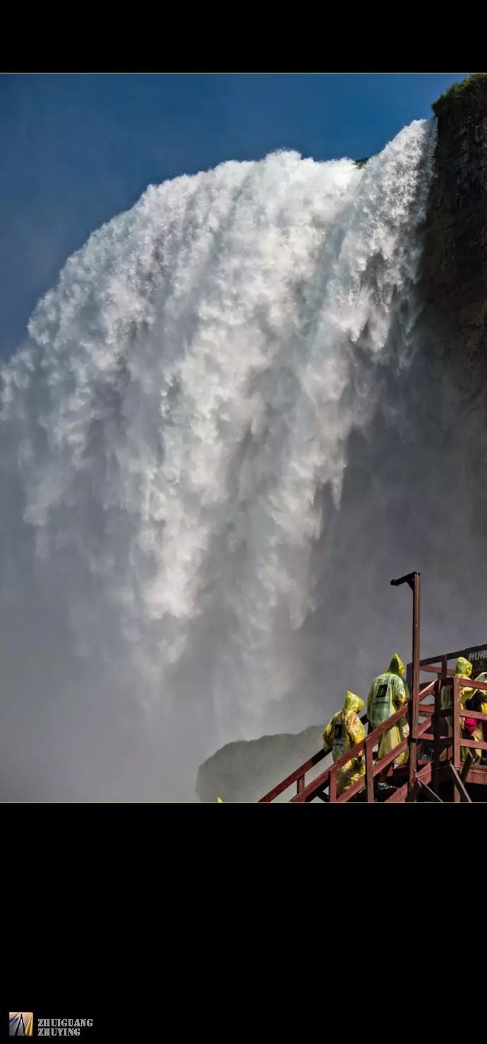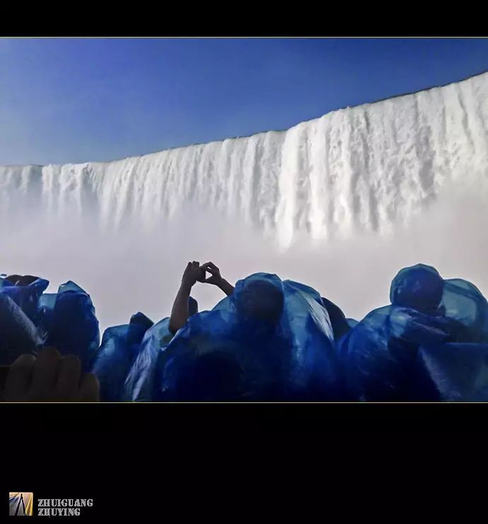 4.游客在陆续登上“雾中少女号”,准备身临其境游览大瀑布。全部“免费”发放蓝色雨衣。