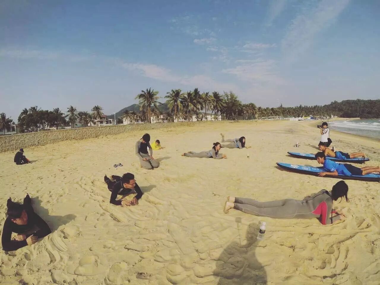 乘坐游艇过把瘾后,从石梅湾又转到日月湾,这里是万宁最闻名的冲浪基地,也是世界冲浪胜地。每年10月至次年4月,当北半球其他冲浪城市气候寒冷,无法冲浪时,万宁气候宜人,海水温暖,日月湾便成为冲浪爱好者的聚集地。不少的外国冲浪爱好者都慕名前来。我们正好赶上了这里举办的冲浪节,可以在海滩上看到各种冲浪的花式动作和技巧。