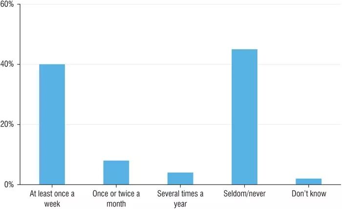 根据Pew 研究中心 2014年的数据统计,52%的美国成年人说他们会偶尔冥想,45%的人说他们几乎从来没有冥想过。