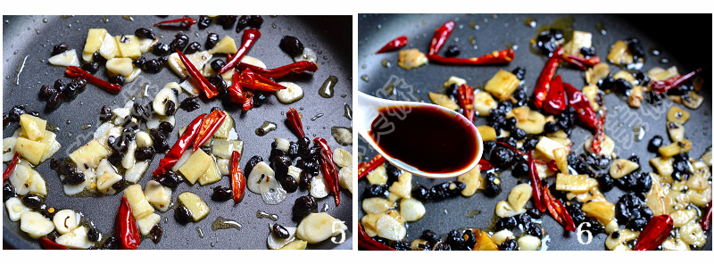 花菜300克、豆豉2汤匙、生姜1小块、大蒜4粒、