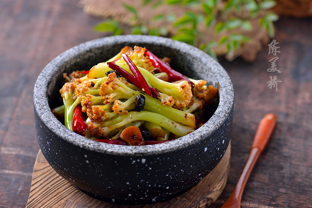 干锅花菜是很多人都爱的一道菜,一般是荤素搭配而炒,比如鲜五花肉、腊肉、培根。其实全素的花菜也很好吃,备齐酱油、蚝油、姜蒜、干辣椒和豆豉就可以炒成一盘开胃下饭的豉香花菜。尤其适合节后不想吃肉的朋友。