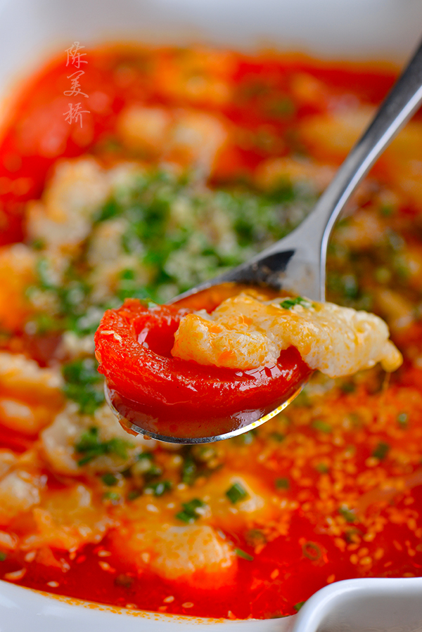 好久没吃番茄水煮鱼了,嫩滑的鱼片融入了番茄的香味,酸爽的汤汁也十足开胃适口。只见橙红的汤里浮着白嫩的鱼片,番茄独有的酸香悠悠入鼻。