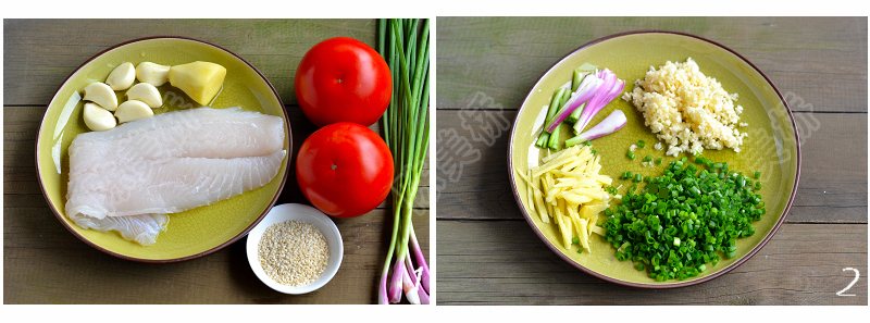 鱼肉500克(其它活鱼代替)、番茄2个400克、香葱5根、