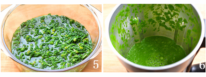 6、将全部清明菜和少许水,放入破壁机和料理机,打细。如果没有机器,就用刀将清明菜切碎。