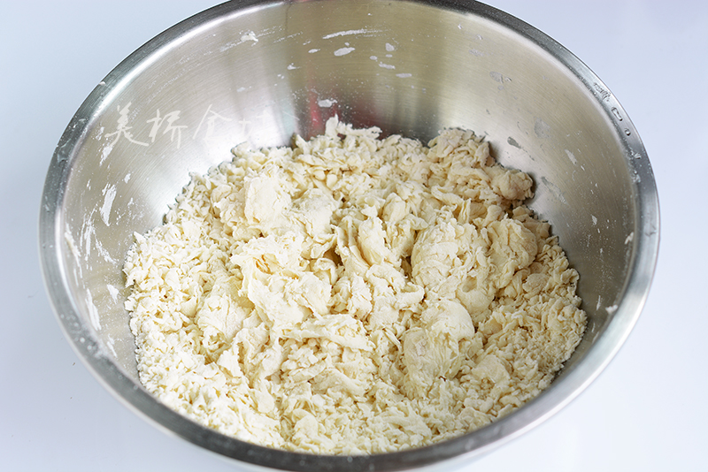 2、面粉加温水和酵母,用筷子拌成絮状。