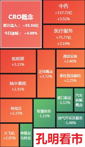 今天早盘指数高开冲高回落,市场上,CRO概念领涨、中药、氢能源、足球概念、大飞机通讯设备、电力涨幅居前,机场航运、油气、数字货币、煤炭走弱。两市超2500只个股下跌,北向资金近买入0.9亿元,股指延续弱势震荡态势,耐心等待方向的选择。