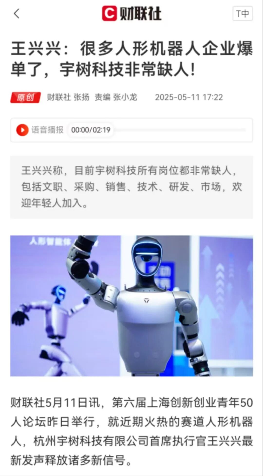 人形机器人,又有新动态,如下图(截图来源:财联社)