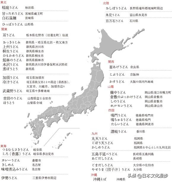 各式各样乌冬面的分类及日本各地乌冬特产图