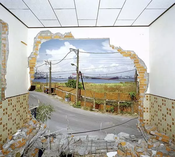 “窗”象征着人类性感的开口,陈伯义置身于室内拍摄窗口外的风景,表现了他对于台湾的土地印象和感情。随着工业的扩张,迫使传统部落骤落消逝,人类记忆的土地印象也只能一再复制。陈伯义的这组作品也成为了台湾地志里的纪录。