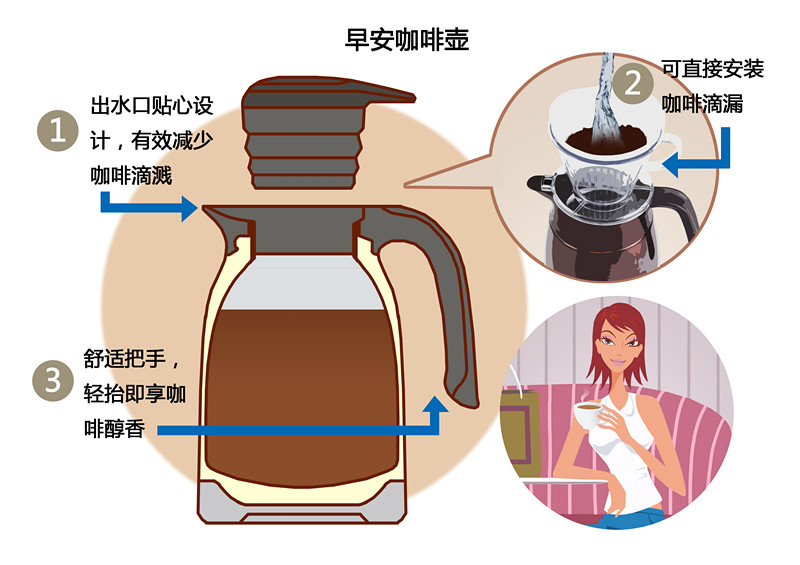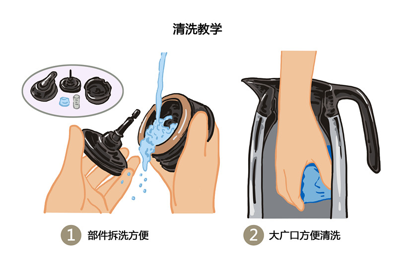 瓶口宽7CM,便于清洗的同时,还方便热水倒入及添加冰块,咖啡滤杯更是可以完美匹配的放置在壶口。