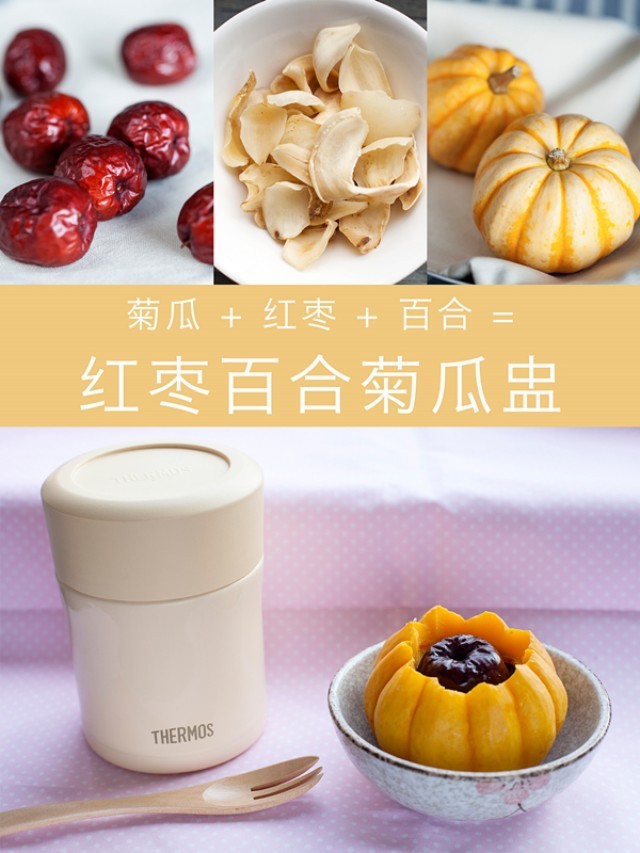 03,红枣去核切片,和泡好的百合一块填进菊瓜碗里;