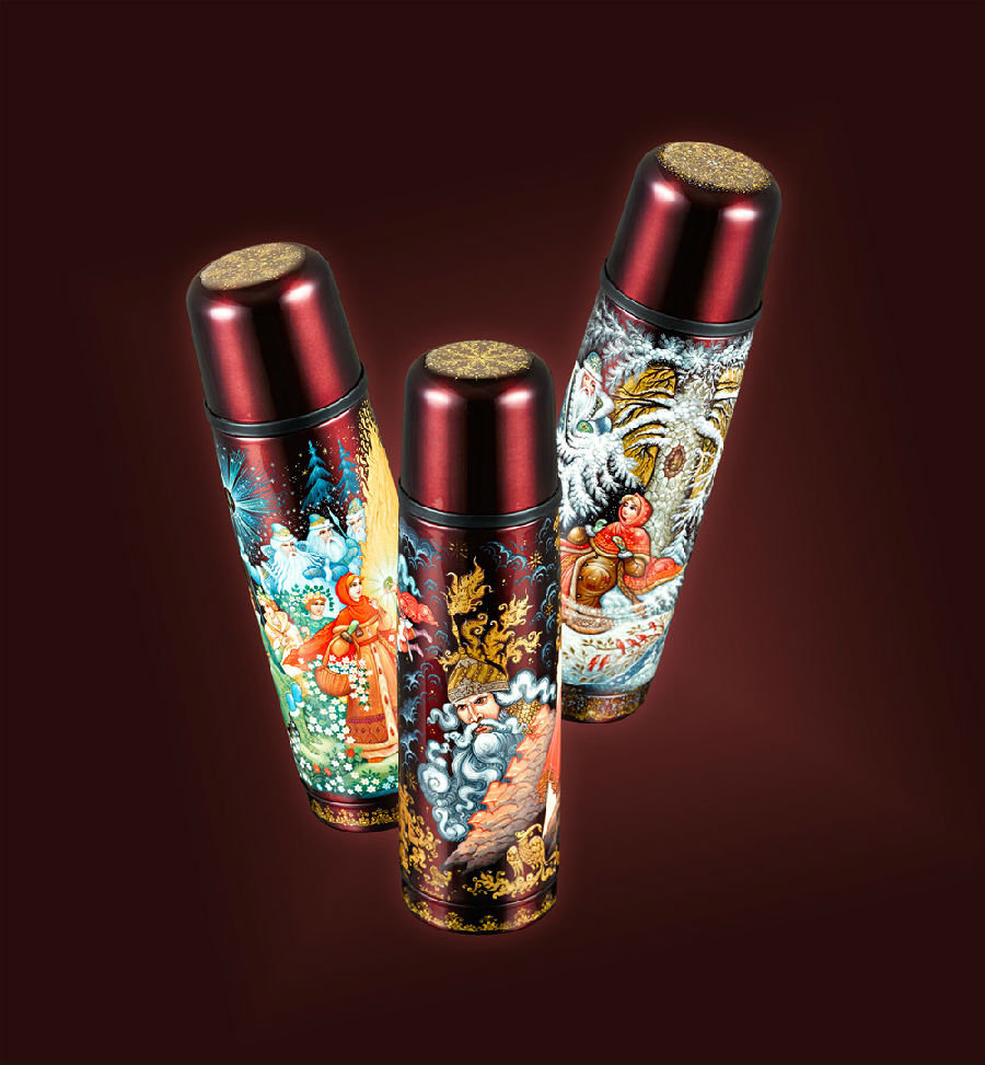 顶级膳魔师童话艺术保温瓶,邀请俄罗斯微缩画名家,使用黄金等贵重原料将俄罗斯知名童话故事《冰雪之王》、《鲁斯兰与柳德米拉》、《十二个月》彩绘于保温瓶上,展现出与众不同的异域风情。
