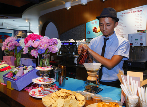 KAFFAL COFFEE的帅气咖啡师,还特别为媒体朋友们准备了手冲咖啡,这些小细节也成为了活跃现场气氛的有效方式,吧台区成为了大家询问产品用法,交流美食心得的聚集地。