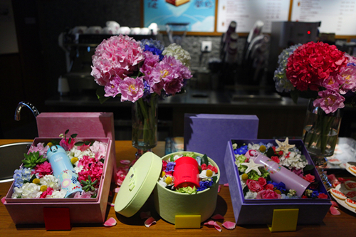 发布会现场,膳魔师与太太悦团合作,结合膳魔师产品,制作出美貌无敌的繁花礼盒,以及印有“THERMOS”LOGO图案的翻糖曲奇。