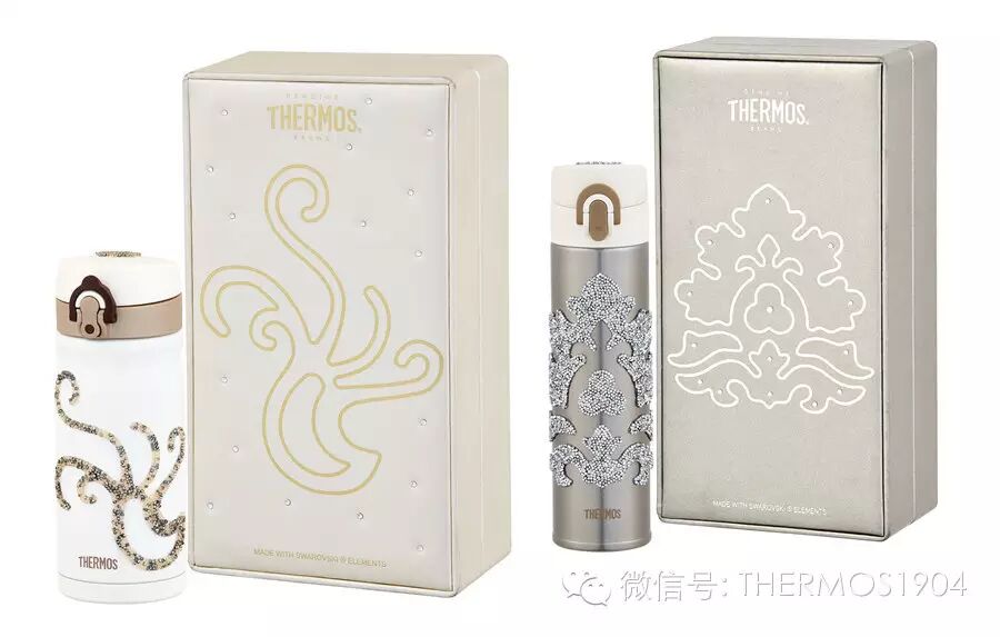 膳魔师 与 Swarovski Elements 携手合作推出的2款水晶珍藏限量版保温杯,专为时尚女性设计,领导潮流的瑰丽艺术品独特且设计精巧,配以特别色调及全手工镶嵌施华洛世奇元素水晶,高贵脱俗。