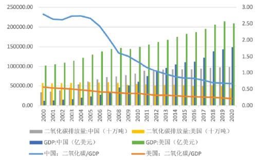 注:次坐标轴衡量的变量为二氧化碳/GDP