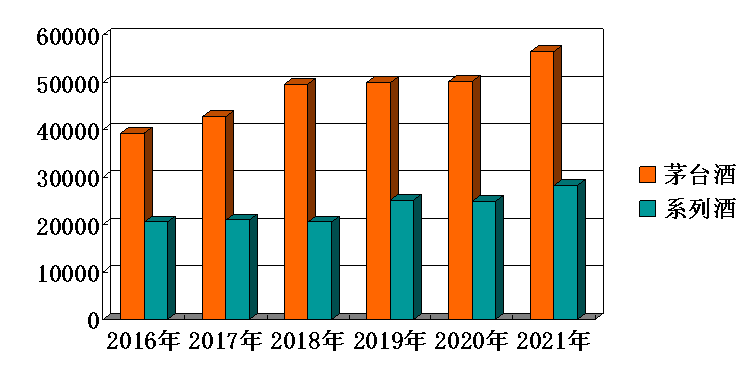 从2016年至2021年,茅台酒产量从3.93万吨扩大至5.65万吨,增加了43.8%。