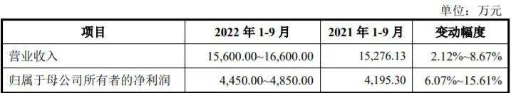 经初步测算,公司预计 2022 年 1-9 月营业收入和利润情况如下: