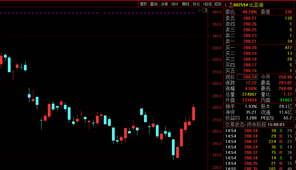 11月 4 日当日,比亚迪A股、港股集体大涨。截至收盘,比亚迪A股股价涨幅为4.56%,港股股价涨幅为5.12%,均实现“五连阳”。
