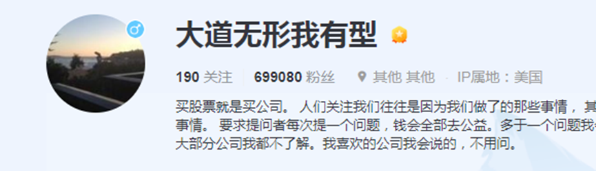 接着转到雪球,成为网站上价值投资的代表人物。“投资大神”。