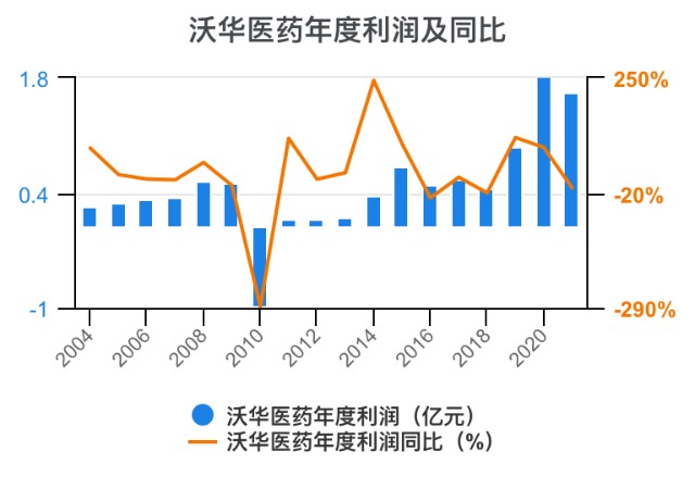 沃华医药年度利润同比,2021期数据为-8.66%。