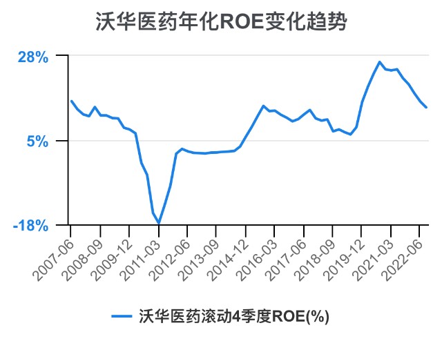 沃华医药滚动4季度ROE,2022-09期数据为13.9%。