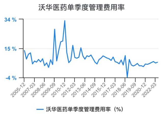 沃华医药单季度管理费用率,2022-09期数据为7.36%。
