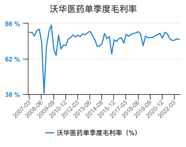 沃华医药单季度毛利率,2022-09期数据为75.1%。