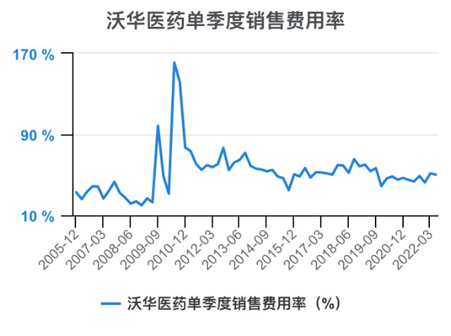 沃华医药单季度销售费用率,2022-09期数据为55.2%。