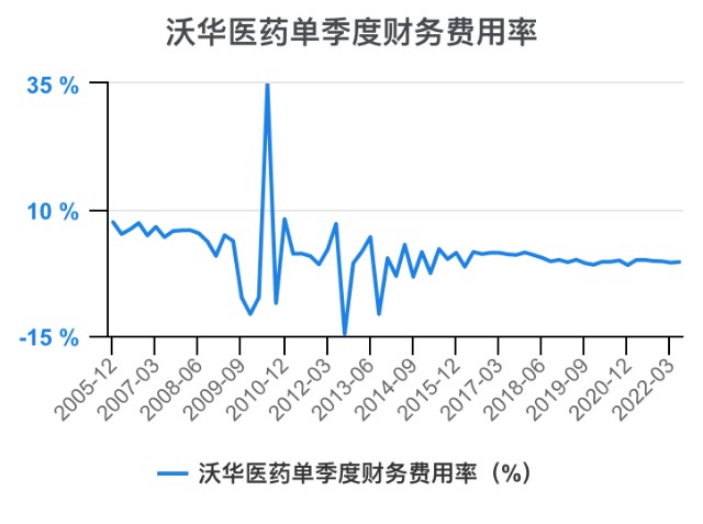 沃华医药单季度财务费用率,2022-09期数据为-0.42%。
