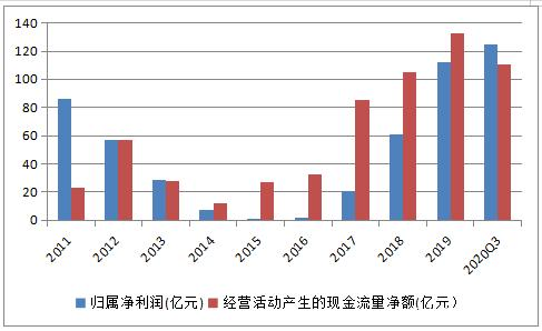 2020年前三季度营收和扣非净利分别为734.24亿元和113亿元,同比增长24.26%和21.06%。