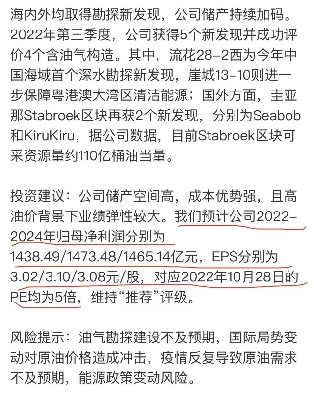 风险提示:油气勘探开发不及预期,国际局势变动对原油价格造成冲击,疫情反复导致原油需求不及预期,能源政策变动风险。这是一篇以中国海油为例说明估值思路的文章,作者攒股记不推荐包括中海油在内的任何股票。