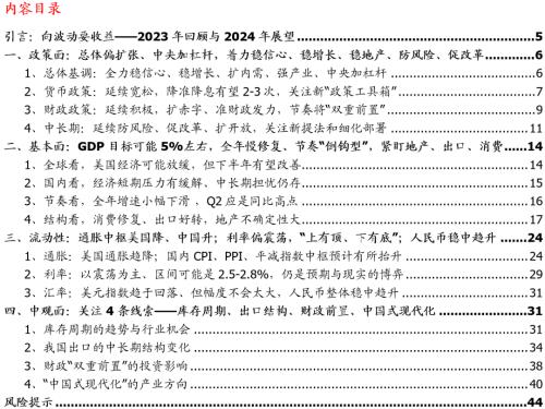 1、总体基调:政策想象空间已被打开,2024年应会偏扩张、偏宽松、偏刺激,关键是中央加杠杆、稳信心、扩内需、稳地产、拉基建,也会着力防风险、强产业、促改革、扩开放。