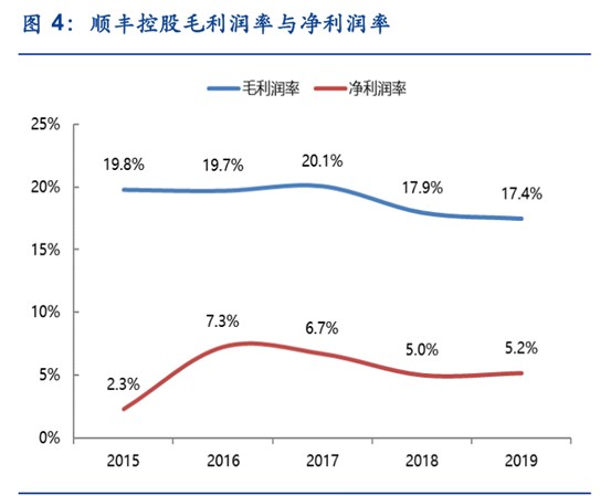 通过下图可以看出,2015年以来,顺丰控股毛利率水平维持在17%以上,但由于快递行业的激烈竞争以及新业务处于投入期,公司毛利率呈现出微幅下滑的趋势,高毛利率这一原则只能算是基本符合。