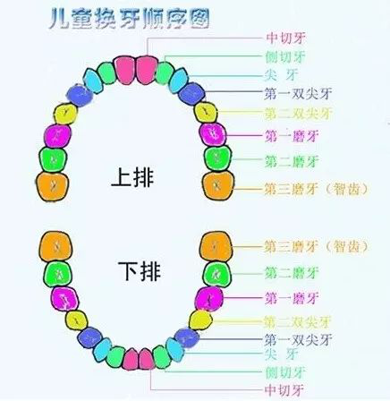 口腔内剩余的12颗牙齿分别是我们的虎牙以及虎牙后面的两颗牙齿,这些牙齿的更换和生长的顺序是不固定的,大约会在9-12岁之间陆续替换完毕。