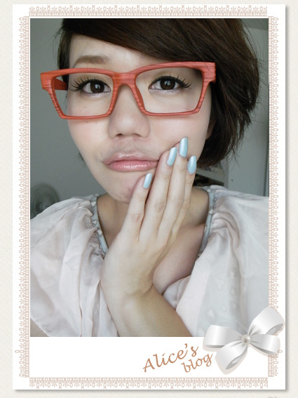 瞧瞧這天配上紅莓眼鏡妝容,跟淺灰藍色相搭之下