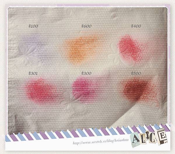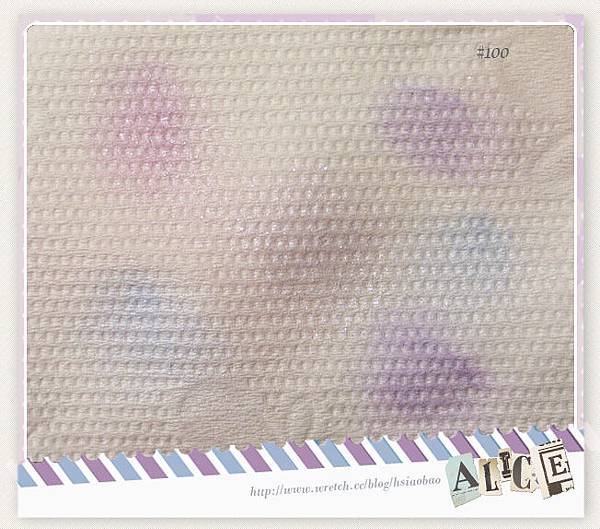 將#100疊刷在#301上,淺藍色碰上粉紅色能夠創造出帶有螢光效果的冷色調粉紅