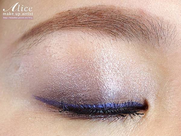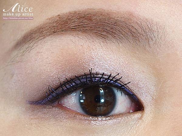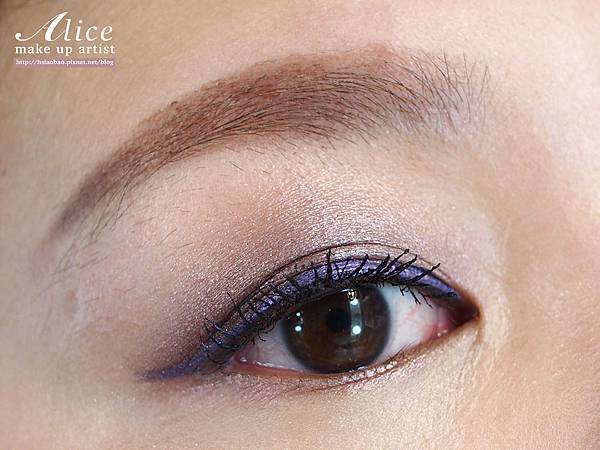 原本低調深邃的灰紫色眼妝配上魅惑力十足的靛紫眼線