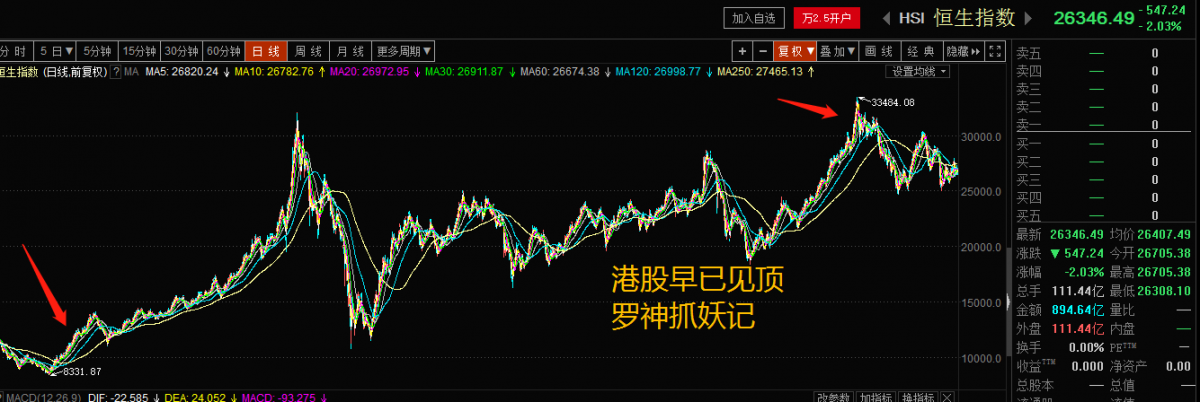 港股的高点在2018年2月,已向下走了一年半多的熊市。