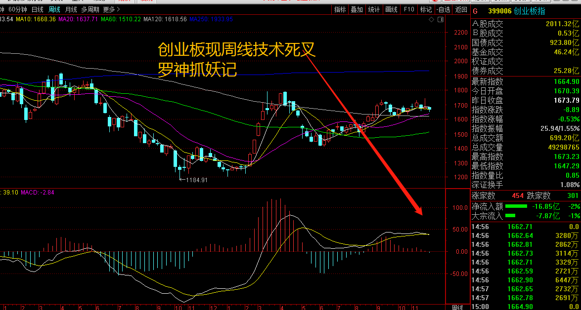 四大指数中深证成指的本周的周K线MACD再现技术的死叉是第二周了,而创业板在本周才刚刚出现技术上的死叉,中小板要强势一些。