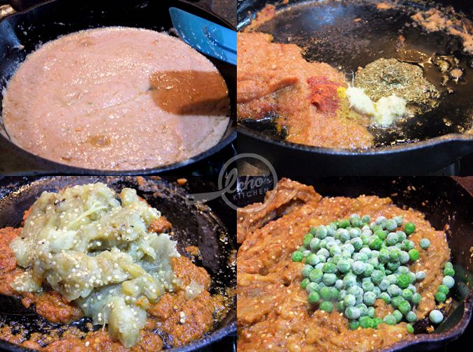 5. 倒入茄子泥翻炒几分钟后加入豌豆翻匀,再煮大约2分钟就好了。