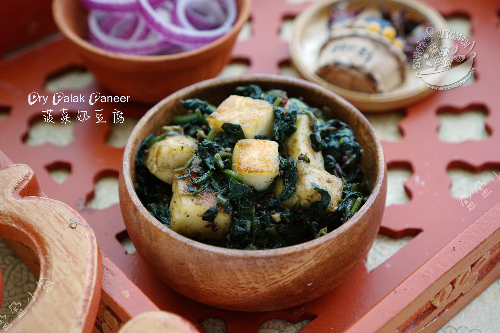 这道菠菜奶豆腐是北印度很有名的一道菜,做法很多,我也做过好几个版本。我特别喜欢这个干锅版,味道很香,很下饭。