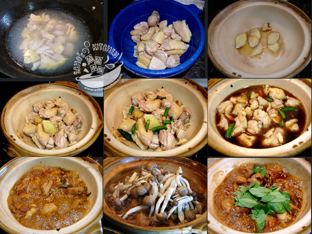 台湾菜三杯鸡鸡肉料理瓦煲料理菌菇 |