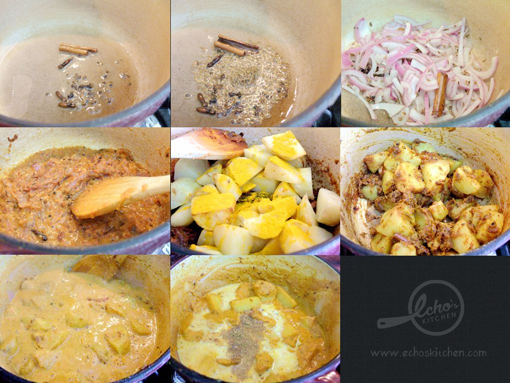 in a cooking pot together with Cinnamon stick, cardamom, cumin