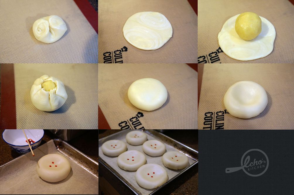 15. Preheat oven to 325 F / 160 C and bake the pastries for 10 minutes, bring the heat down to 300 F/ 150 C and continue baking for another 20 minutes. The pastry should be baked at lower rack of the oven at a lower temperature than normal pastry to retain its characteristic white color crust/skin.