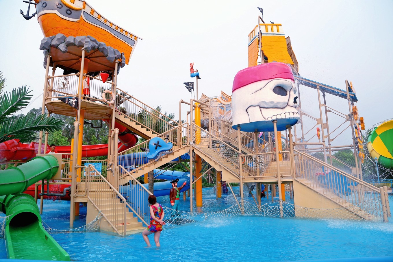 欢乐水寨:个人认为这里是一处特别美的地方,可以从滑道冲入水中,也可以直接站在水里,迎接翻斗桶带来的从天而降的巨大水花,清爽一夏,刺激无比。
