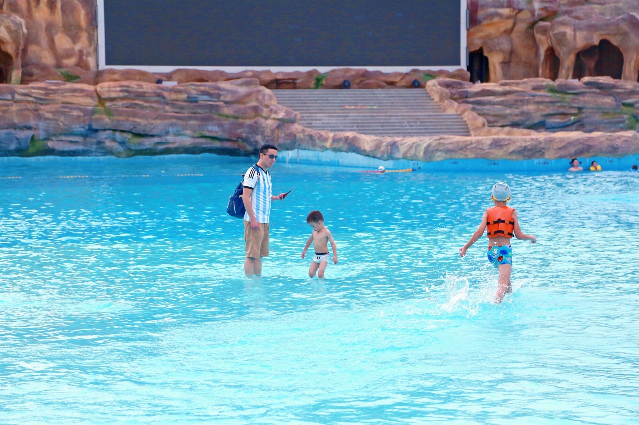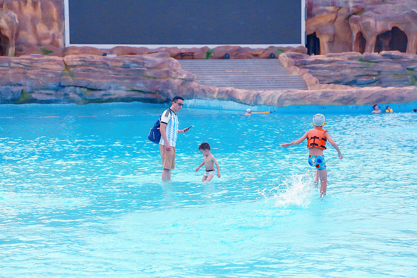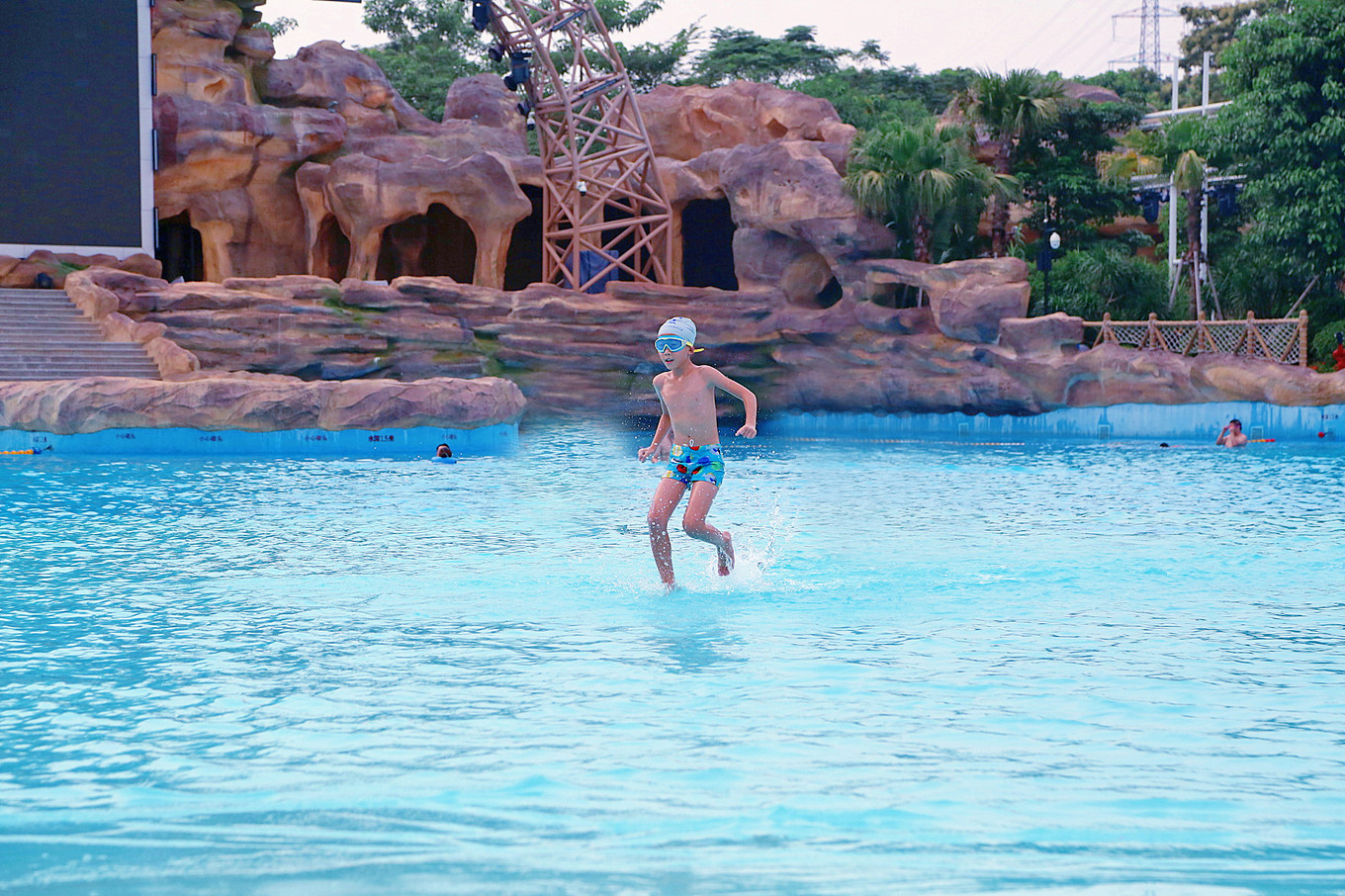 带着小孩来这里,绝对太合适的,在水中任他肆意玩水。到处都洋溢着尖叫声、浪花声、水流声,仿佛这就是一曲欢乐的儿歌。